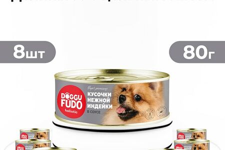 Влажный корм для собак Doggufudo Holistic Кусочки нежной индейки в соусе 8*80г доставка