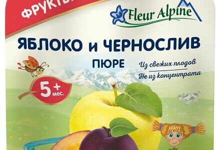 Пюре Fleur Alpine Organic Яблоко и чернослив с 5 месяцев 90г – органическое лакомство, которое прекрасно подойдет для разнообразия рациона крохи. Производится по щадящей технологии исключительно из свежих яблок и сушеных слив, а не из концентрата. Не содержит сахара, крахмала, консервантов, искусственных красителей, ароматизаторов и ГМО. Обладает ярким насыщенным вкусом, имеет нежную, в меру густую консистенцию. Мягкую упаковку с дозатором удобно брать с собой куда угодно: на прогулку, в гости, в дорогу. Для кормления не потребуется ложечка, ведь кроха сможет кушать сам, слегка надавливая пальчиками на пакетик. Fleur Alpine – это экологически чистое, по-настоящему полезное и вкусное детское питание премиум-класса. Вся продукция бренда проходит сертификацию в соответствии с Регламентами Европейского Союза об органическом сельском хозяйстве.