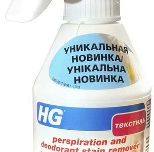Средство чистящее HG для удаления пятен пота и дезодоранта 250мл эффективно осуществляет предварительную обработку при удалении таких пятен и подходит как для белых, так и для цветных тканей. Использование этого средства перед каждой стиркой предотвращает появление пятен от пота и дезодоранта.