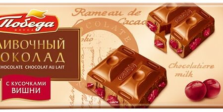 Шоколад Победа вкуса молочный сливочный с кусочками вишни 250г доставка