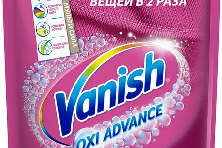 Пятновыводитель и отбеливатель Vanish Oxi Advance порошкообразный для цветных тканей 400г – новое мультифункциональное средство без хлора для усиления качества стирки цветных тканей. Теперь Ваниш не только эффективно удаляет пятна, но и предотвращает окрашивание ткани, избавляет от неприятного запаха и производит гигиеническую обработку.