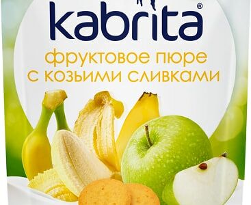 Пюре Kabrita — спелые бананы, сладкое яблоко и вкусное детское печенье в сочетании с нежными сливками козьего молока. Удобно брать с собой. Идеальное решение для полдника, второго завтрака, перекуса, прогулок и путешествий как для малышей, так и для детей более старшего возраста. Удобная и современная мягкая упаковка способствует развитию мелкой моторики малыша и навыков самостоятельности. Не требует хранения в холодильнике.
