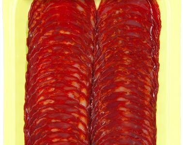 Сведения о составе: Свинина, нитритно-посолочная смесь (соль, фиксатор окраски (нитрит натрия)), регуляторы кислотности (ацетат натрия, цитрат натрия), пищевые волокна (цитрусовые, свекольные), мальтодекстрин, усилитель вкуса и аромата (глутамат натрия), антиокислители (изоаскорбат натрия, аскорбат натрия), специи (паприка, черный перец, тмин, чеснок), экстракты специй (лук, любисток), глюкоза, краситель (кармины), стартовая культураПищевая ценность: 330,21,27,2Условия хранения: 6,0Срок годности в днях: 90Страна изготовления: РоссияСведения об упаковке: Вакуумная упаковкаПроизводитель: Иней