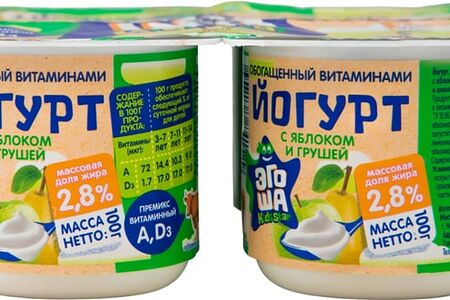 Йогурт Эгоша яблоко груша 2.8% 100г доставка