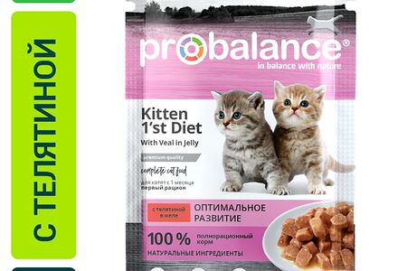 Влажный корм для котят Probalance Kitten 1st Diet с телятиной в желе 85г доставка
