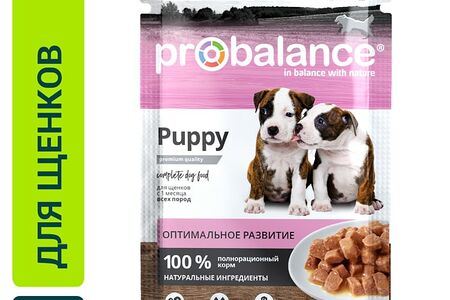 Влажный корм для щенков Probalance 85г - полнорационное сбалансированное питание для щенков всех пород с 1 месяца. Корм представляет собой аппетитные кусочки со вкусом говядины в ароматном соусе. Он разработан в Дании практикующими ветеринарами и сочетает в себе вкус и пользу. Благодаря природным антиоксидантам, витаминам и минералам помогает укреплять иммунитет. Чтобы обеспечить дневную норму белка для растущего организма, корм содержит несколько видов мясных продуктов, в том числе говядину. Не содержит красителей, усилителей вкуса и Е-консервантов.
