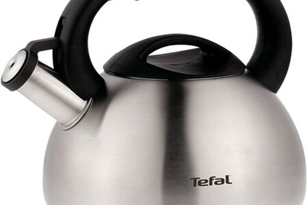 Чайник Tefal для газовых плит 2.5л стильный чайник для газовых плит от ведущего французского производителя бытовых приборов и посуды. Этот чайник не только великолепно сложен и вместителен, он еще и невероятно надежен, поскольку изготовлен из высококачественной нержавеющей стали, способной выдерживать высокий перепад температур. Термоизоляционная ручка из карбона не нагревается и позволит аккуратно снять чайник при закипании, не прибегая к дополнительным средствам защиты. Эргономичный дизайн ручки и правильно распределенная нагрузка позволяют контролировать процесс наливания горячей воды в чашки. Чайник оснащен громким, но приятным для уха свистком, поэтому проспать закипание просто не получится. Благодаря тщательно отполированному металлу чайник на раз отмывается от накипи и, кроме того, отличается высоким экологическим стандартом.