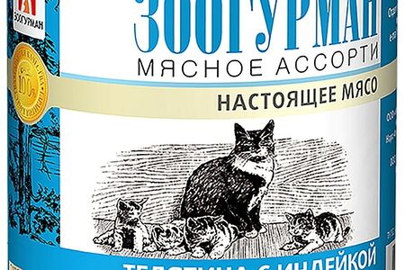 Влажный корм для кошек Зоогурман Мясное ассорти Телятина с индейкой 250г доставка