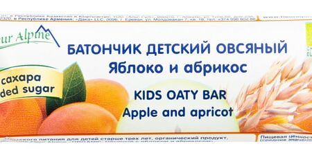 Батончик овсяный детский Fleur Alpine Яблоко и Абрикос с 3 лет 23г – 100% органический продукт, произведенный Швейцарии. Содержит измельченные цельнозерновые овсяные хлопья, сок и пюре из яблок, кусочки кураги и стружку кокоса. Обладает полутвердой, рассыпчатой текстурой и приятным вкусом, в котором ощущается естественная фруктовая сладость. В составе нет сахара, пальмового масла, искусственных красителей, ароматизаторов, консервантов и ГМО. Благодаря индивидуальной упаковке батончик удобно брать с собой на прогулку или в дорогу. Fleur Alpine – это экологически чистое, по-настоящему полезное и вкусное детское питание премиум-класса. В ассортименте вы найдете продукты для начала и продолжения прикорма, для знакомства с новыми вкусами, для подрастающих малышей и даже для всей семьи. Вся продукция бренда проходит сертификацию в соответствии с Регламентами Европейского Союза об органическом сельском хозяйстве.