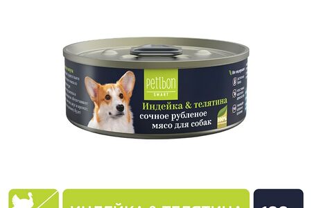 Влажный корм для собак Petibon Smart Рубленое мясо с индейкой и телятиной 100г доставка