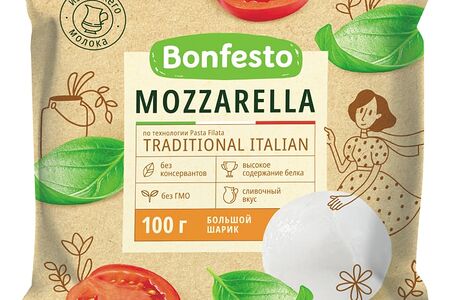 Сыр Bonfesto Mozzarella 45% 100г доставка