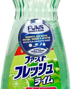 Жидкость для мытья посуды Funs овощей и фруктов свежий лайм 600мл идеально подходит для мытья кухонной утвари, посуды (в том числе детской), овощей и фруктов. Уникальная формула с растительными экстрактами быстро справляется даже с самыми сложными загрязнениями и эффективно устраняет неприятные запахи. Средство хорошо пенится и без остатка смывается водой с любой поверхности. Обладает приятным цитрусовым ароматом, создает обильную и густую пену. Не вызывает сухости и раздражения, отлично подходит для чувствительной кожи рук. Благодаря высокой концентрации моющих компонентов экономично расходуется. Сделано в Японии.