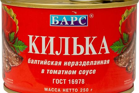 Сведения о составе: Рыба, томатная паста, сахар, масло растительное, лук, мука, соль, уксусная кислота, пряности или их экстрактыПищевая ценность: 182,14,12,4.5Условия хранения: 20,0Срок годности в днях: 1095Страна изготовления: РоссияСведения об упаковке: Жестяная банкаПроизводитель: Барс