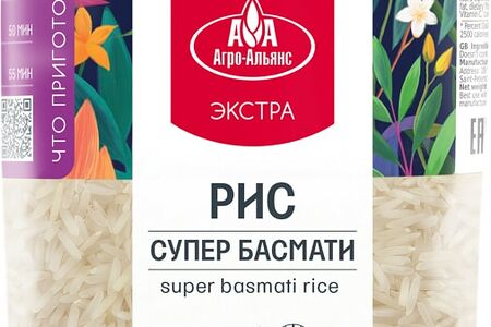 Рис Агро-Альянс Экстра Супер Басмати 500г - это длиннозерный сорт, признанный во всем мире "королем риса". При варке он получается рассыпчатым, с чистым природным ароматом и благородным вкусом. Именно этот сорт завоевал признание многих профессиональных кулинаров и используется на кухнях дорогих ресторанов. Перед использованием рекомендуется промыть под проточной водой. Деления на боковой стороне упаковки помогают правильно дозировать продукт (1 деление = 2 порции). Варить из расчета 1:2. Клейкая лента на упаковке позволяет плотно закрыть пакет после вскрытия.