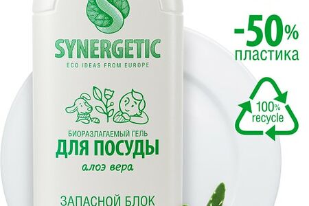 Запасной блок геля для мытья посуды Synergetic Алоэ вера антибактериальный 1л доставка