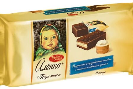 Пирожное Алёнка – покрытое шоколадной глазурью сочетание классического светлого и шоколадного бисквита с нежной прослойкой из легкого сливочно-ванильного крема. Мягкий, воздушный бисквит, тающая текстура прослойки, насыщенный аромат и сливочно-ванильный вкус оттеняют пряные вкусы шоколада. Замечательное дополнение к чаю, кофе и молоку.