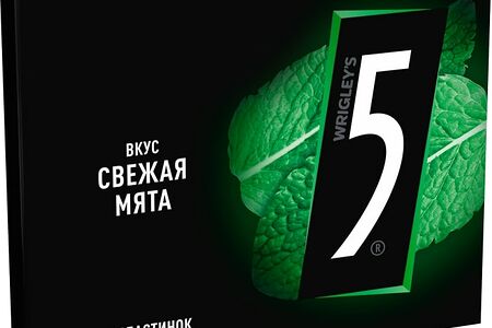 Жевательная резинка 5 в формате пластинок со вкусом свежей мяты. Обладает мягкой приятной текстурой. Cтильная черная пачка легко помещается в кармане и в сумочке, ей легко найдется место также в ящике рабочего стола. Без сахара.