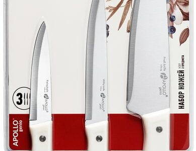 Набор ножей Ivory, 3 предмета, — это классический набор поварской тройки с белой рукояткой из ABS-пластика, который впишется в любой интерьер кухни. Лезвия ножей изготовлены из нержавеющей стали, стойкой к износу и деформации. Эргономичная рукоятка ножей Ivory выполнена из безопасного ABS-пластика, который не скользит в руках в процессе использования. В состав набора входят: нож кухонный 15 см, нож универсальный 12,3 см, нож для овощей 9 см. Кухонный (поварской) нож — это классический нож, но более крупных размеров — не менее 15 см. Этот нож справится с любыми задачами и подойдет для разделки мяса, рыбы, нарезки овощей и фруктов. Универсальный нож — это самый используемый нож, его длина составляет 12,3 см. Нож отлично подходит для нарезки, разделки, подготовки и измельчения продуктов. Овощной нож — это небольшой нож с узким и коротким лезвием, его длина составляет 9 см. Ножом удобно очистить овощи и фрукты, мелко нарезать, сделать узоры. Материалы изготовления: нержавеющая сталь 3Cr13, пластик ABS.