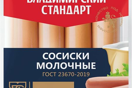Сосиски Владимирский Стандарт Молочные ГОСТ 480г доставка