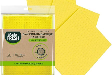 Салфетки Master Fresh Эко целлюлозные с антимикробной пропиткой 15*18см 3шт отлично подойдут для ежедневной уборки. Производятся из экологически безопасной, 100% натуральной целлюлозы. Прочные и износостойкие, они способны впитать влагу в 10 раз больше своего веса и удерживать ее внутри. Не оставляют разводов, следов или ворсинок на поверхностях. В составе салфеток присутствует антимикробный компонент, произведенный в Испании. Он обеспечивает их чистоту и гигиеничность во влажной среде, а также позволяет продлить срок службы изделий. Во влажном состоянии изделия очень мягкие и приятные на ощупь, а при высыхании твердеют, что препятствует развитию бактерий и неприятных запахов. Упаковка подлежит вторичной переработке. Продукция ТМ Master Fresh – это яркий пример правильного сочетания доступной цены, высокого качества и стильного дизайна.