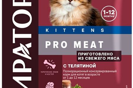 Влажный корм для котят Мираторг Pro Meat с телятиной 80г доставка