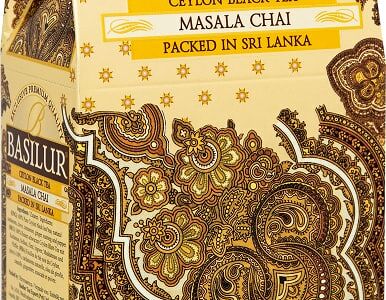 Сведения о составе: Чай черный цейлонский байховый листовой, кардамон, гвоздика, корица, имбирь, мускатный орех и перецСрок годности в днях: 1460Страна изготовления: Шри-ЛанкаСведения об упаковке: Картонная коробкаПроизводитель: Basilur Tea Export
