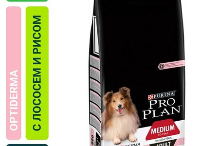 Сухой корм для собак Pro Plan Optiderma Medium Adult Sensitive с лососем и рисом 14кг доставка