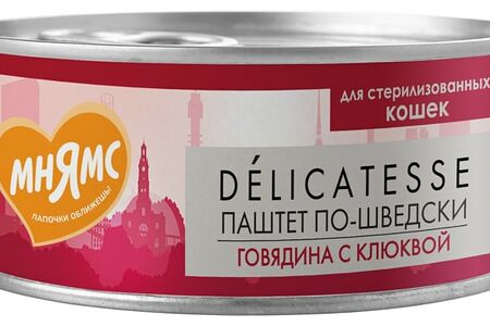 Влажный корм для кошек Мнямс Delicatesse Паштет по-шведски Говядина с клюквой 100г доставка
