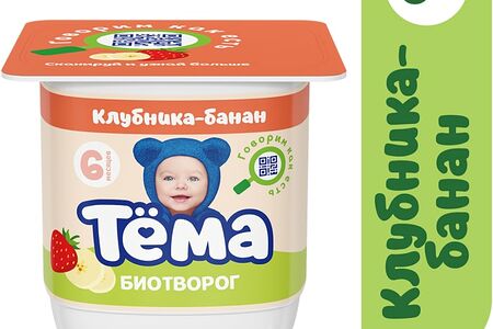 Биотворог детский Тема Клубника банан обогащенный бифидобактериями с 6 мес 4% 95г доставка