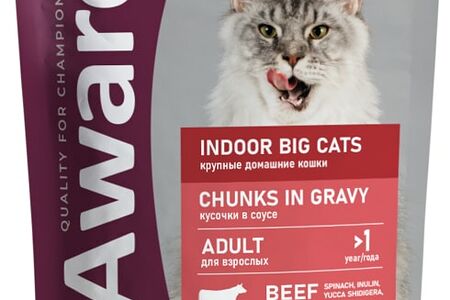 Влажный корм для кошек Award Indoor big cats для крупных пород кусочки в соусе с говядиной 85г доставка