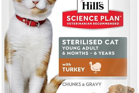 Корм для кошек Hills Science Plan Sterilised Индейка 85г - это биологически обоснованное питание премиального класса, разработанное опытными ветеринарами-диетологами специально для стерилизованных кошек и котов в возрасте до 6 лет. Идеально сбалансированный состав содержит оптимальное количество питательных веществ и нутриентов, которые помогут вашему питомцу сохранить здоровый вес и предотвратят образование камней в мочевом пузыре. Нежные мясные кусочки в аппетитном соусе приготовлены из высококачественного животного протеина (курицы и индейки 5%); они обогащены витаминами и минералами для хорошего самочувствия, а также комплексом антиоксидантов с клинически подтвержденным эффектом для сильного иммунитета.