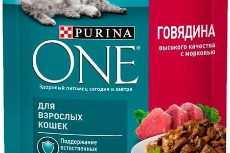 Влажный корм для кошек Purina ONE с говядиной и морковью 75 г — вкусное полнорационное питание для питомцев старше 1 года. Белковый компонент — мясо говядины — обеспечивает организм кошки необходимыми аминокислотами и железом, которое отвечает за насыщение крови кислородом. Уменьшенная концентрация минералов снижает риск образования мочевых камней и болезней почек. Природная клетчатка стимулирует работу кишечника и обеспечивает организм антиоксидантами, что укрепляет иммунную защиту.