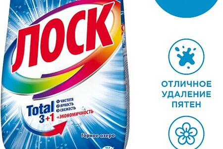 Порошок для стирки "Лоск Горное озеро" отстирывает даже сложные пятна, сохраняет белизну и сияние вещей, дарит вещам приятный аромат. Работает в стиральных машинах любого типа и в воде любой жесткости. Эффективен уже при 30 ˚C. Не содержит фосфатов и хлорных соединений, безопасен для окружающей среды и кожи человека. 100% перерабатываемая упаковка.