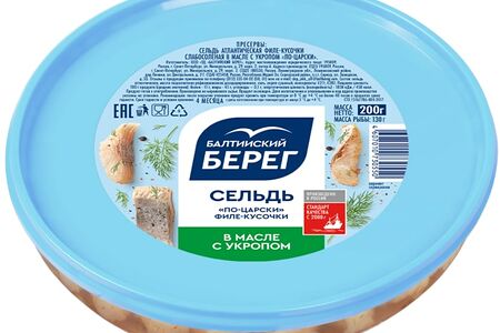 Сельдь Балтийский Берег По-царски филе-кусочки в масле с укропом 200г доставка