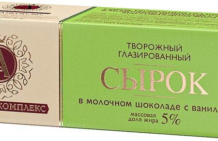 Сведения о составе: Творог, сахар, шоколад молочный (сахар, какао-масло, сухое цельное молоко, какао тертое, эмульгатор –лецитины (соевый лецитин), ароматизатор натуральный: ваниль), сливочное масло, экстракт ванилиПищевая ценность: 288.1,10.6,11.3,36Условия хранения: 6,2Срок годности в днях: 21Страна изготовления: РоссияСведения об упаковке: Картонная упаковкаПроизводитель: РостАгроКомплекс