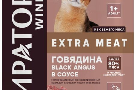 Консервированный полнорационный корм Winner Extra Meat для взрослых кошек с говядиной в соусе содержит свежее мясо, а также все полезные питательные вещества без добавления консервантов, ароматизаторов и усилителей вкуса.
