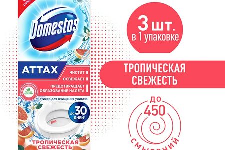 Стикер для очищения унитаза Domestos Тропическая свежесть 3шт*10г доставка
