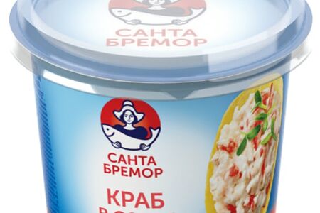 Сведения о составе: Рыбная продукция: мясо крабовое (имитация) (фарш рыбный# (сурими): мясо рыбы (*И-нитепёр, *СП-краснозубый спинорог, *К-джонии), сахар, яичный белок, стабилизаторы: пирофосфат натрия, полифосфат натрия; вода питьевая, крахмалы: кукурузный, тапиоковый; масло растительное, соль, регулятор кислотности гидрокарбонат натрия, загустители: каррагинан из водорослей, тары камедь; ароматизатор, эмульгатор моно- и диглицериды жирных кислот, красители: кармины, экстракт паприки), мясо кальмара вареное (^Л-кальмар перуанско-чилийский гигантский; ^Б-кальмар командорский), мясо краба камчатского** вареное; масло растительное, вода питьевая, крахмал картофельный, сахар, соль, яичный желток, сухое обезжиренное молоко, сливки сухие, ароматизаторы, загуститель ксантановая камедь, консерванты: бензоат натрия, сорбат калия; регулятор кислотности уксусная кислота ледяная, краситель каротины. Продукт может содержать следы сои, глютенаПищевая ценность: 290,4,26,11Условия хранения: 4,-2Срок годности в днях: 120Страна изготовления: БеларусьСведения об упаковке: Пластиковый стаканПроизводитель: Санта Бремор