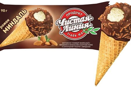 Мороженое Чистая Линия Пломбир ванильный с миндалем в рожке 12% 90г доставка