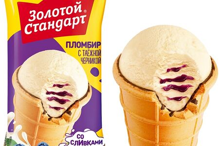 Мороженое Золотой Стандарт Пломбир в вафельном стаканчике с глазурью таежная черника 93г доставка