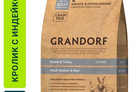 Сухой корм для собак Grandorf Adult Medium & Maxi для средних и крупных пород с кроликом и индейкой 3кг доставка