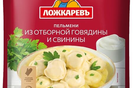 Пельмени Ложкаревъ из отборной говядины и свинины 900г доставка