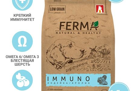 Сухой корм для собак Ferma Immuno для мелких и средних пород Индейка кролик 1.5кг доставка