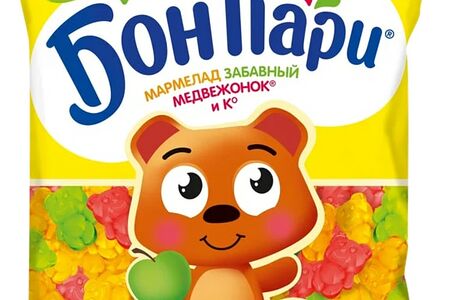 Жевательный однослойный мармелад Бон Пари со вкусом фруктов в форме забавных медвежат. Без добавления искусственных красителей. Побалуйте себя сочным фруктовым миксом в форме медвежат!