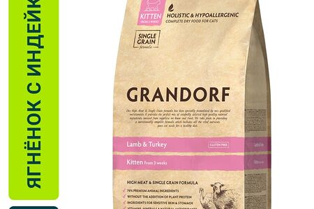 Сухой корм для котят Grandorf Kitten с ягненком с индейкой 2кг доставка