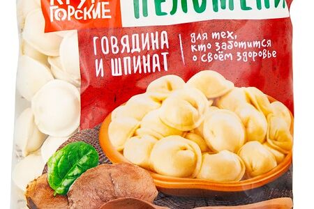 Пельмени Крутогорские зеленые с говядиной и шпинатом 800г доставка