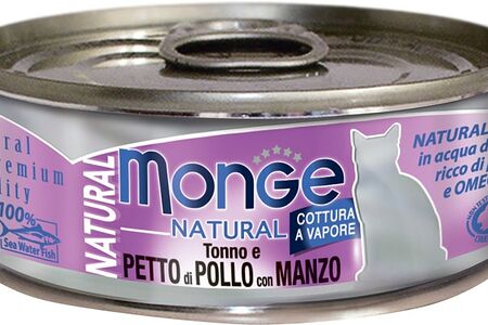 Влажный корм для кошек Monge Cat Natural Тунец с курицей и говядиной 80г доставка