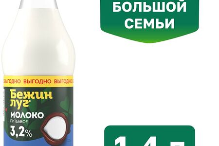 Молоко Бежин Луг Пастеризованное 3.2% 1.4л доставка