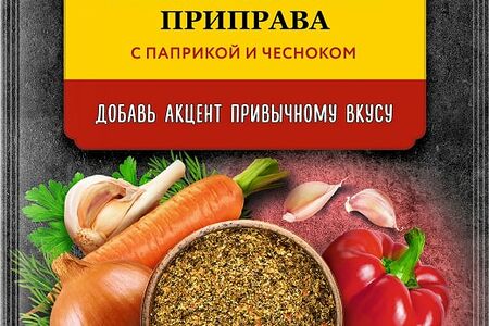 Сведения о составе: Соль; овощи (чеснок, петрушка, морковь, укроп, лук); специи (паприка, перец черный); мальтодекстрин; сахар; подсолнечное масло; краситель (экстракт паприки)Пищевая ценность: 160,4.5,3,25Условия хранения: 25,0Срок годности в днях: 453Страна изготовления: РоссияСведения об упаковке: ПакетПроизводитель: Юроп Фудс ГБ