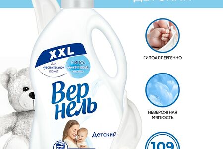 Кондиционер ополаскиватель для стирки белья Вернель Детский 2.73л 109 стирок доставка